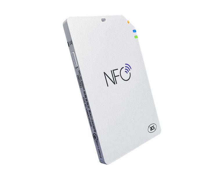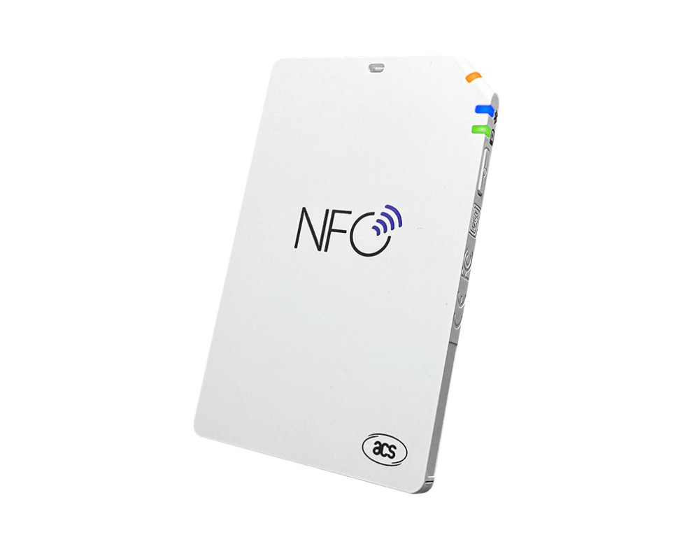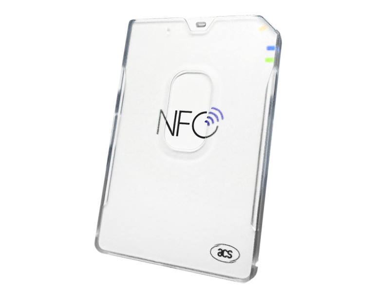 The ACR1555U is an NFC reader that can be connected to a computer or other mobile devices via Bluetooth or USB.