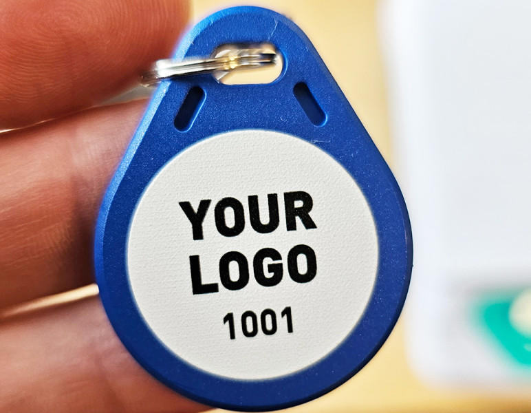 Beside the key fobs from stock, we can produce customized key fobs with a housing in different color or shape and can do various printing services like printing company logos, serial numbers, or chip ID codes.