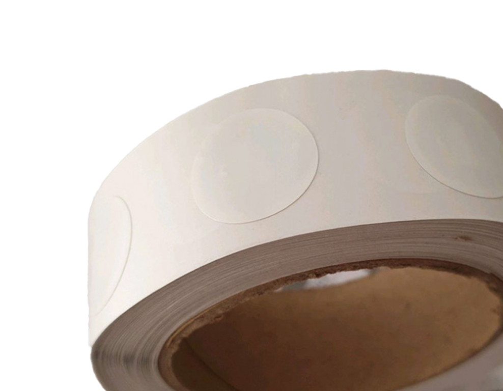 Round plastic stickers with an NTAG216 chip, which have enough memory for NFC business cards and applications where more than just a web link is encoded (vCard, mailto, etc.).