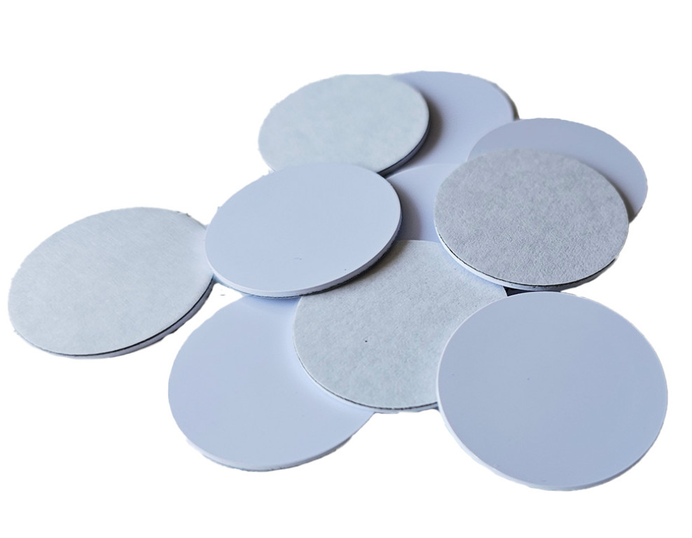 PVC stickers with a programmable 125 kHz T5577 chip and on-metal protection are suitable for copying the ID code from existing RFID cards, key fobs, wristbands, etc.