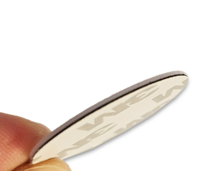 Robust 30 mm NFC stickers with a NTAG213 Chip and On-metal Protection contain a commonly used NFC NTAG213 chip, have a diameter of 30 mm, and are made of multiple layers of solid plastic material, including an on-metal protection material and a layer with the strong 3M adhesive which will make sure the NFC stickers are securely attached for a long time to come.